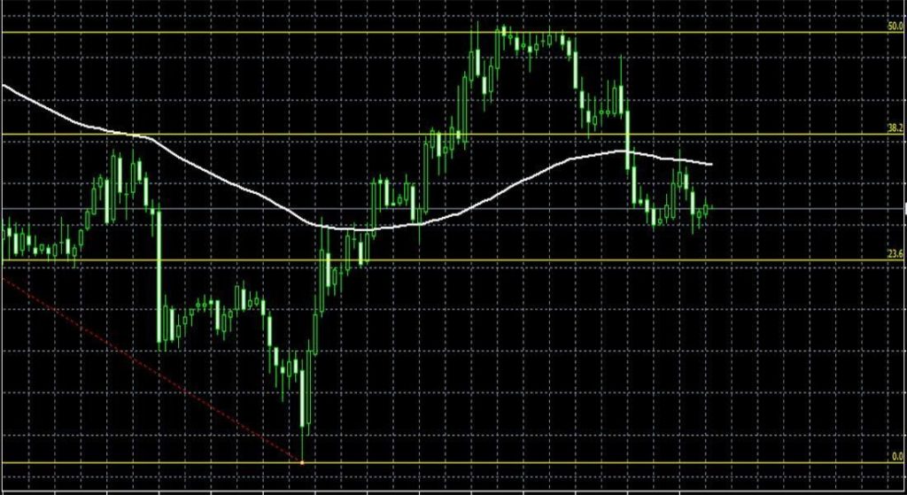 Developers of Fibo limit trading strategy recommend traders to start with the determining of the global trend direction. They can use simple moving average with a period 85 for this. If this line is downwards and the price is above it, we deal with the downtrend and vice versa.